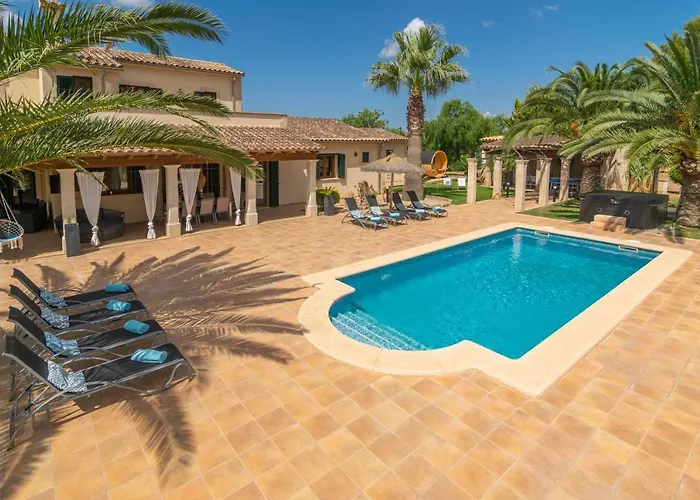 The 5-bedroom Villa Sun Club Home Llucmajor offers proximity to nearby tourist spots, such as the Mallorca Horses equestrian center, situated 2.9 km away. Located around 10 minutes by car from the Hermitage of Sant Honorat, this villa features a swimming pool with umbrellas and loungers.